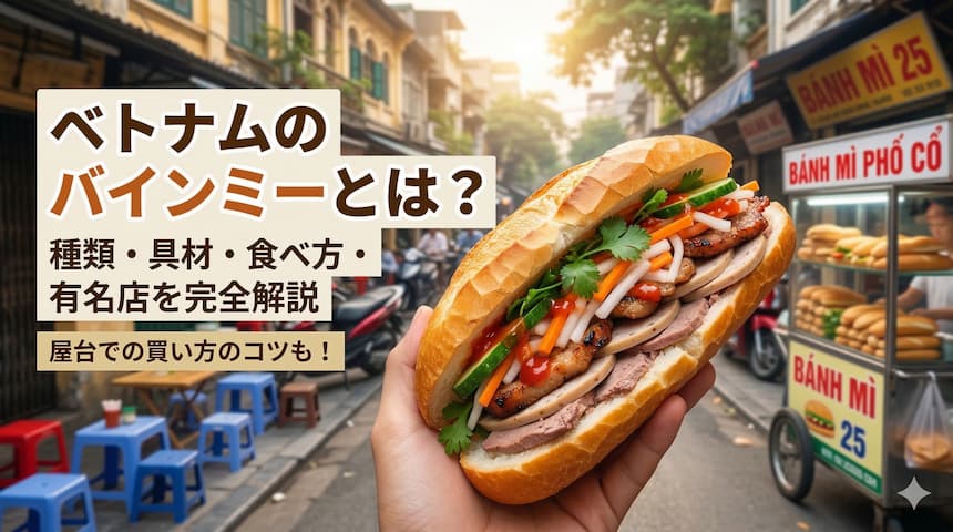 この記事では、バインミーの歴史から種類、日本のサンドイッチとの違い、ハノイ・ホーチミンの有名店、そして「屋台で買うときのコツ」まで、在住者の視点でまとめた。