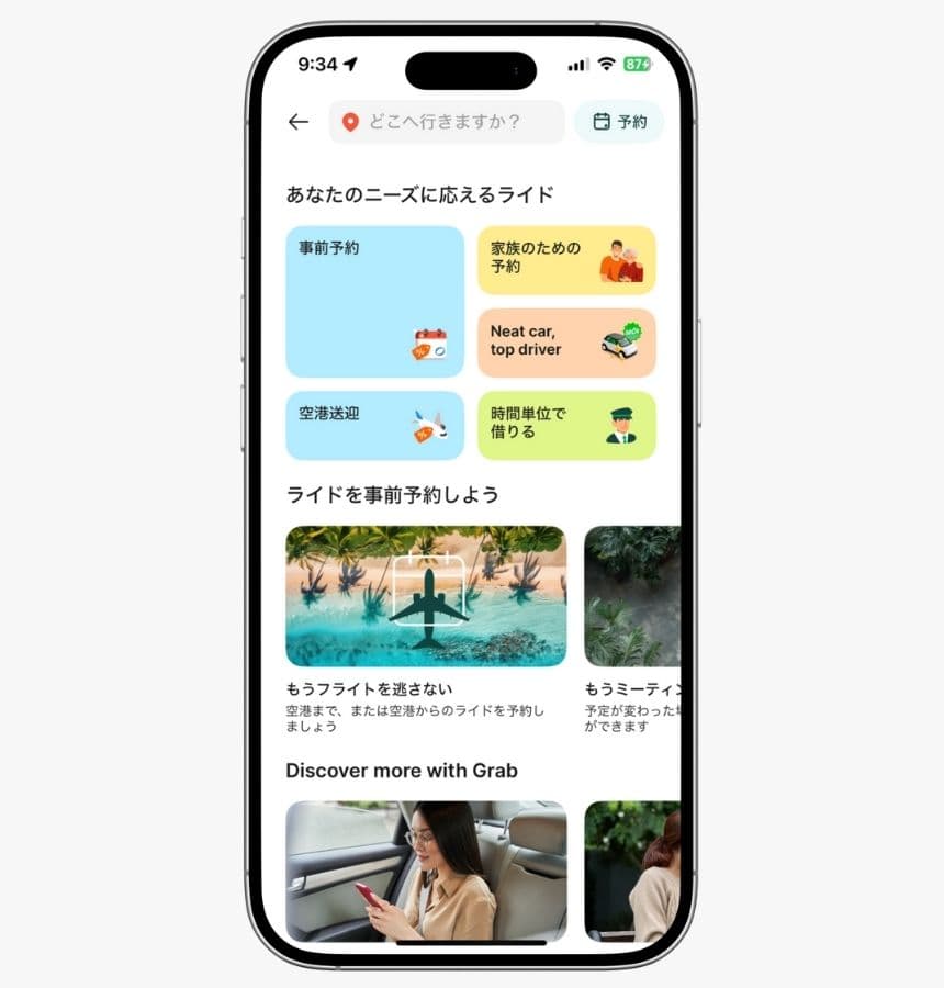 空港送迎を事前に予約する「Grab予約機能」も活用できる。