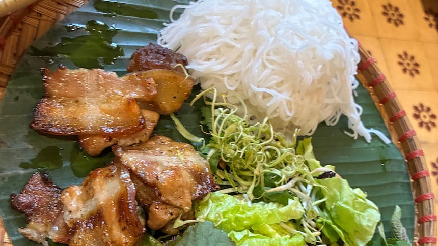 先述のチャーカー通りにある名物料理。白身魚をターメリックとディルで炒め焼きにし、米粉麺と一緒に食べる。ハノイでしか食べられない味。150,000〜200,000ドン(約900〜1,200円)。