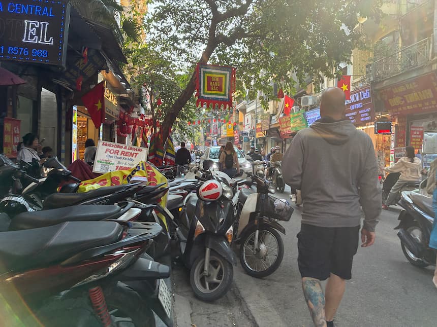 旧市街で一番ハードルが高いのは道路横断なので、初めてなら先にコツだけ掴んでおくと安心です(詳しくは「ハノイの道路横断」記事へ)