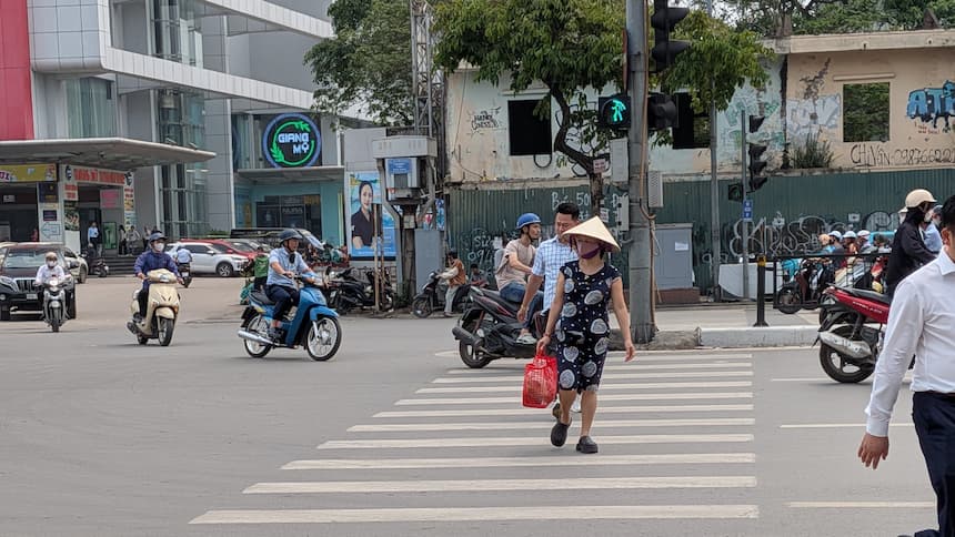 法律上は歩行者優先だ。ただし現実の路上では「速いもの・大きいもの優先」が暗黙のルール。2025年施行の政令168号では歩行者の違反にも罰金が定められており、規定外の場所での横断は15万〜25万VND(約900〜1,500円)。信号無視も同額の罰金だ。