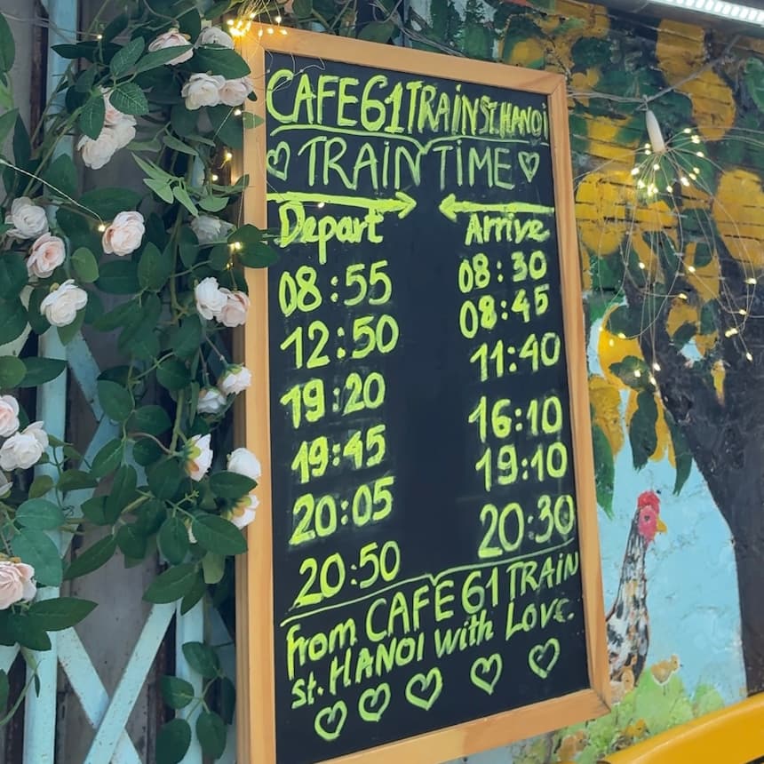 最大のハイライトである列車通過。ただし、相手はベトナム鉄道、時間は頻繁に変更される。あくまで目安と考え、予定時刻の30分前にはカフェで待機するのが賢明だ 。
